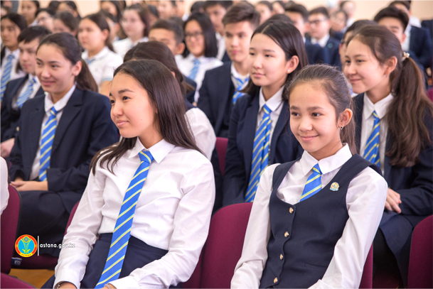 этажное здание современного дизайна.Язык обучения: казахский. В детском
