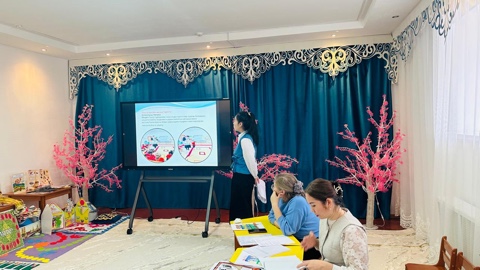 Мамандар ”Ұлттық құндылықтарды таныстыру арқылы ұлттық құндылықтарды бағалауға, олардың асыл қазына екендігін түсіндіре отырып, балаларды ұлтшылдыққа тәрбиелеу” бағытында жүргізілген жұмыстарымен таныстырды. Біртұтас тәрбие юағдарламасын оқу процесінде жүзеге асыру барысында қолданылған көрнекіліктер көрмесі ұйымдастырылды.